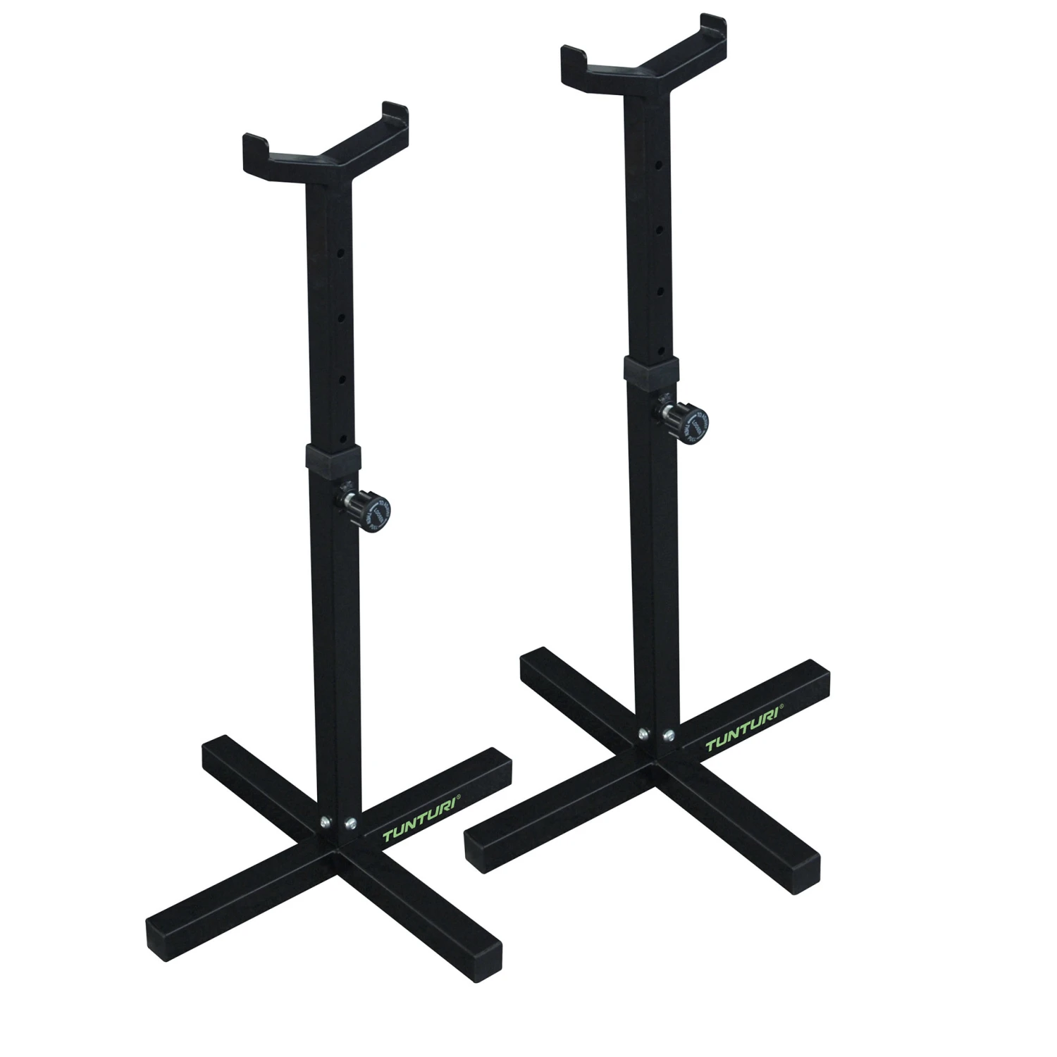 Need barbell supports next to your weight bench? Or during upright workouts? With the multifunctional Tunturi WT10 Spotter Catchers, you get a pair of weight stands for your barbells.
