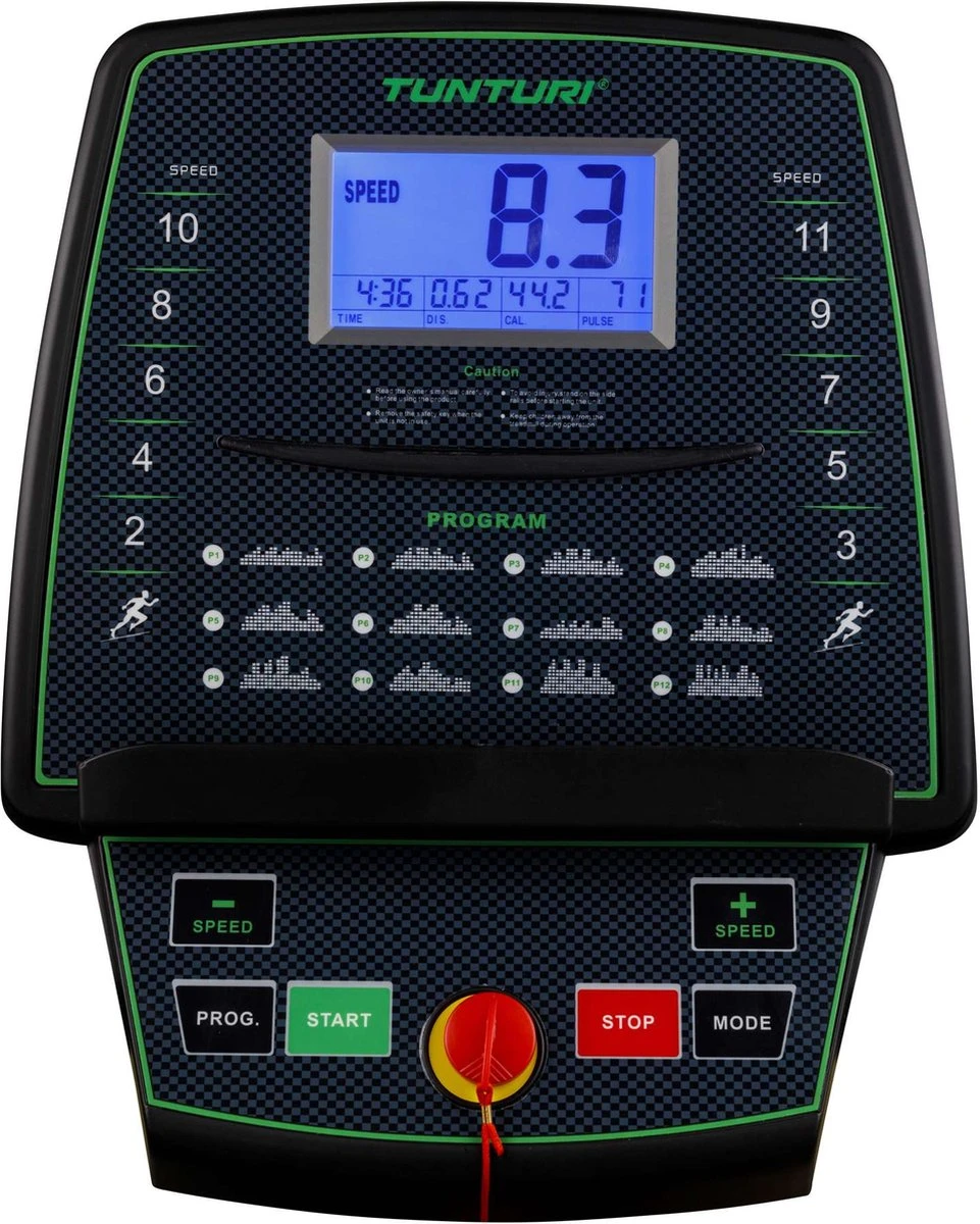 Op de Cardio Fit T30 volg je tijdens het trainen de belangrijkste parameters: snelheid, afstand, tijd en hellingshoek. Ook het aantal verbruikte calorieën lees je af op de monitor met duidelijke display (110 x 60 mm). Je weet welk effect je training heeft. De 12 programma’s stellen je conditie op de proef met verschillende snelheden en hellingshoeken. De sensoren van de stevige handgrepen registreren je hartslag.