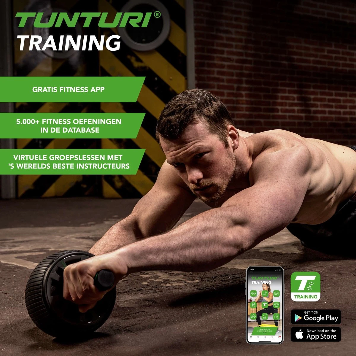 Combineer een krachttraining met een balanstraining. Ga voor het Tunturi Dubbele Trainingswiel.