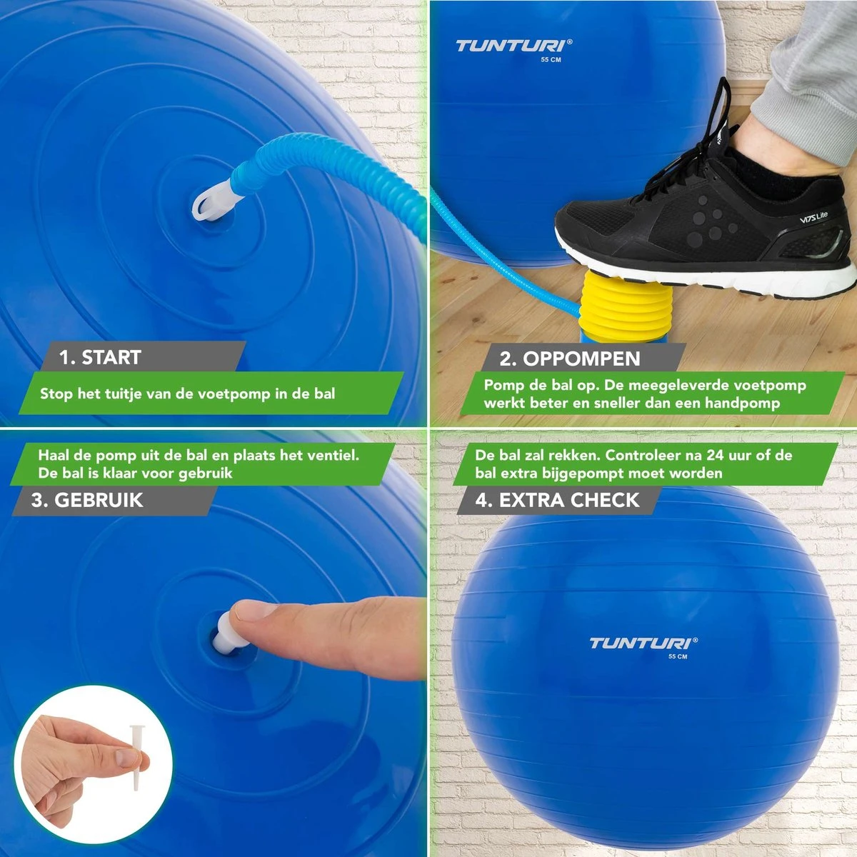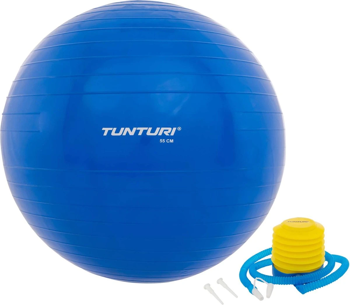 Tunturi Fitness Bal – Yoga Bal Inclusief Pomp – Pilates Bal – Zwangerschaps Bal – 55 Cm – Kleur: Blauw – Incl. Gratis Fitness App