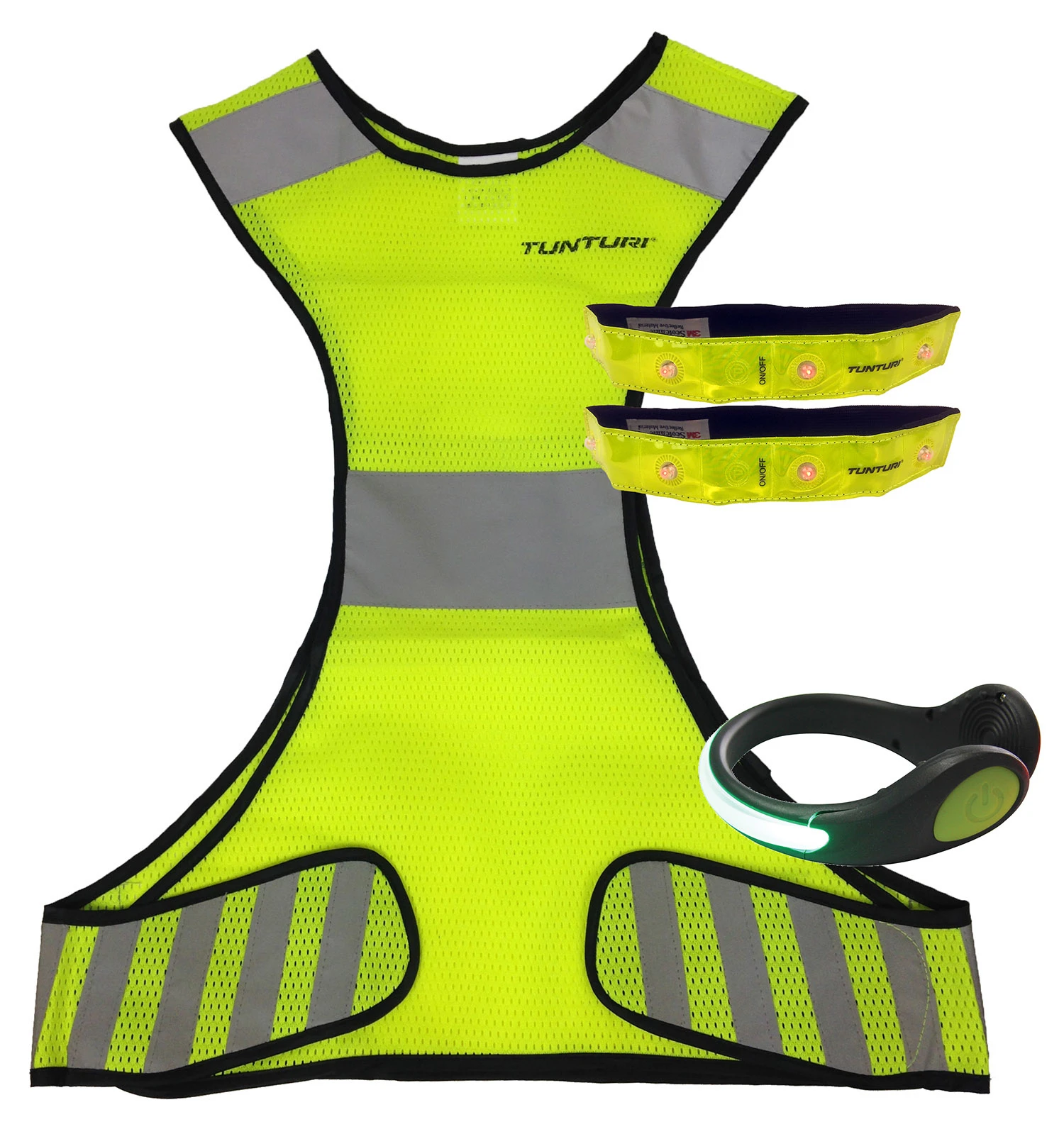 This complete 4-piece Tunturi lighting and reflection set provides extremely good visibility in the dark.