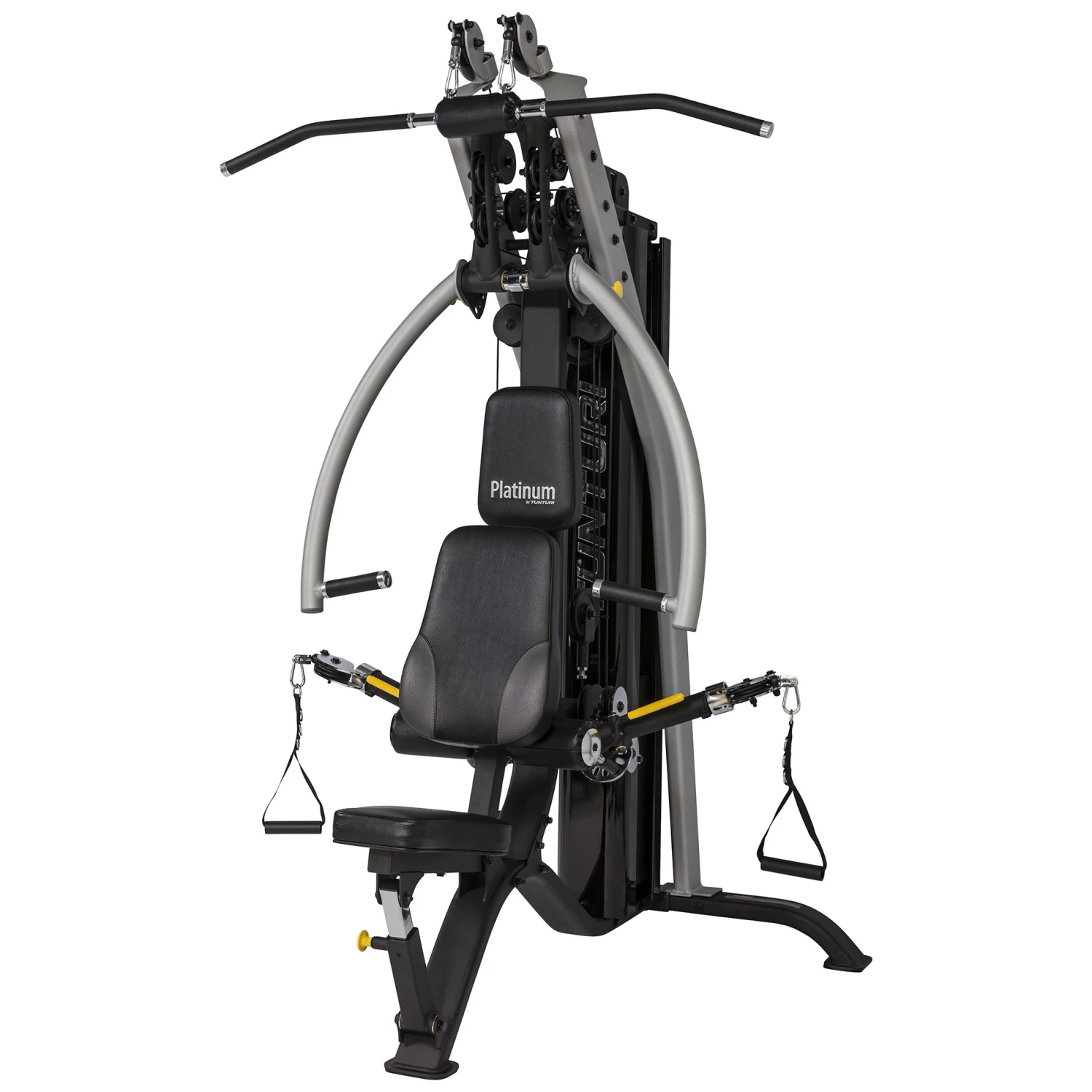 Use the upper pulley for lat pull down exercises, with the latissimus bar that comes with the machine.