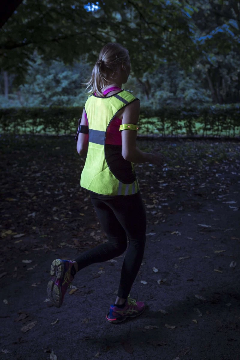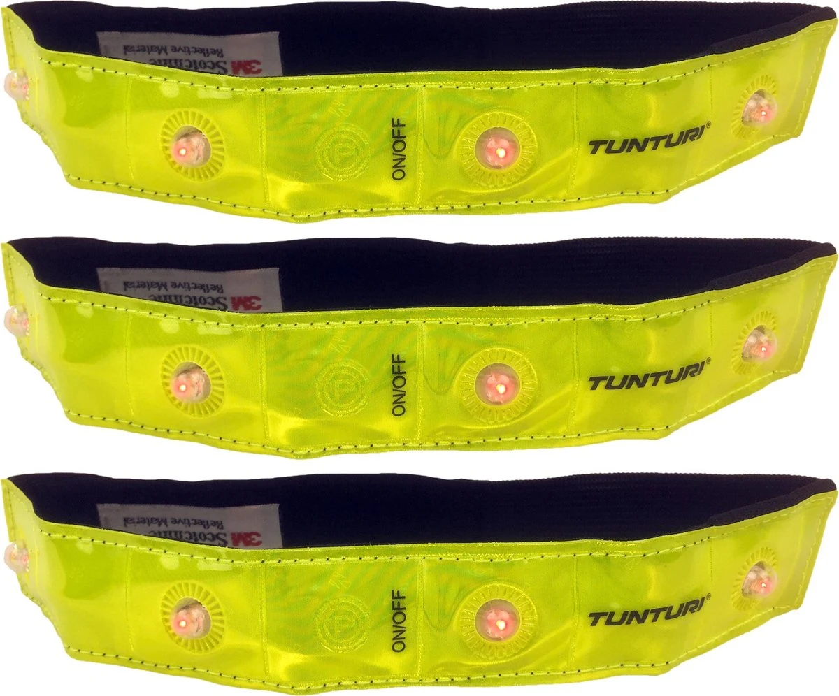 Deze Tunturi Veiligheidsband is een fijne accessoire voor sportieve activiteiten in de buitenlucht. Denk aan hardlopen en wandelen, maar ook aan paardrijden of bootcamp. De armband zorgt er namelijk voor dat je duidelijk zichtbaar bent voor anderen, zowel overdag als ’s avonds. Dit komt door het felgele reflecterende materiaal en de 4 rode ledlampjes. Die felle lampjes kunnen continu branden of knipperen. De veiligheidsband is gemakkelijk te bevestigen met de klittenbandsluiting aan de achterkant.