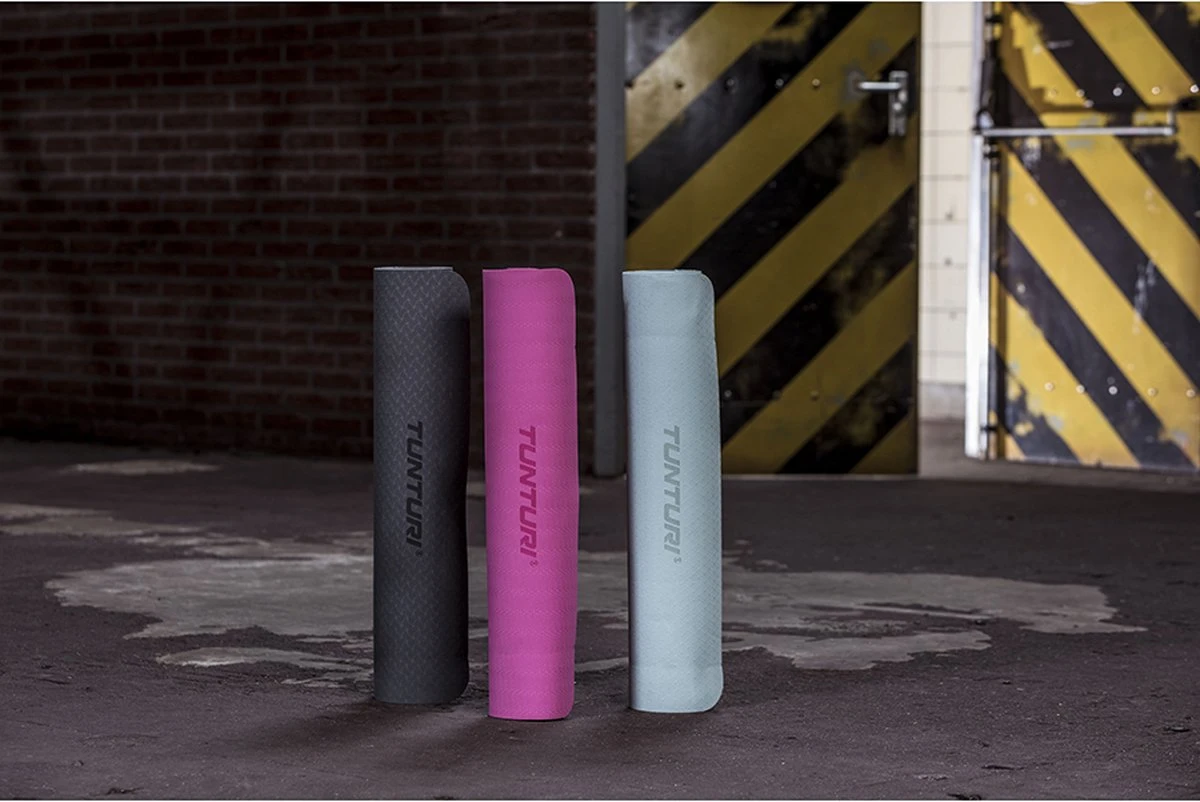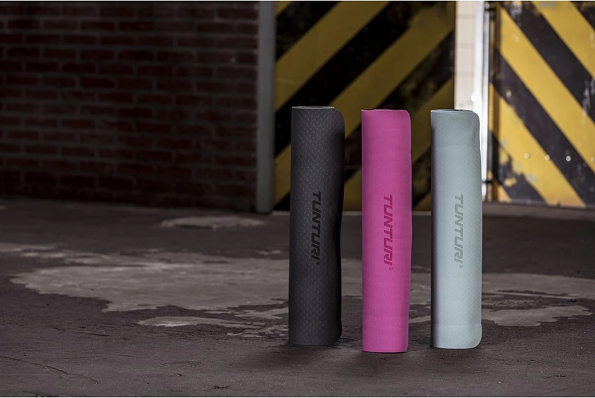 Tunturi TPE Yogamat – Fitnessmat 4mm Dik – Zwart Koord – Blauw – Incl. Gratis Fitness App
