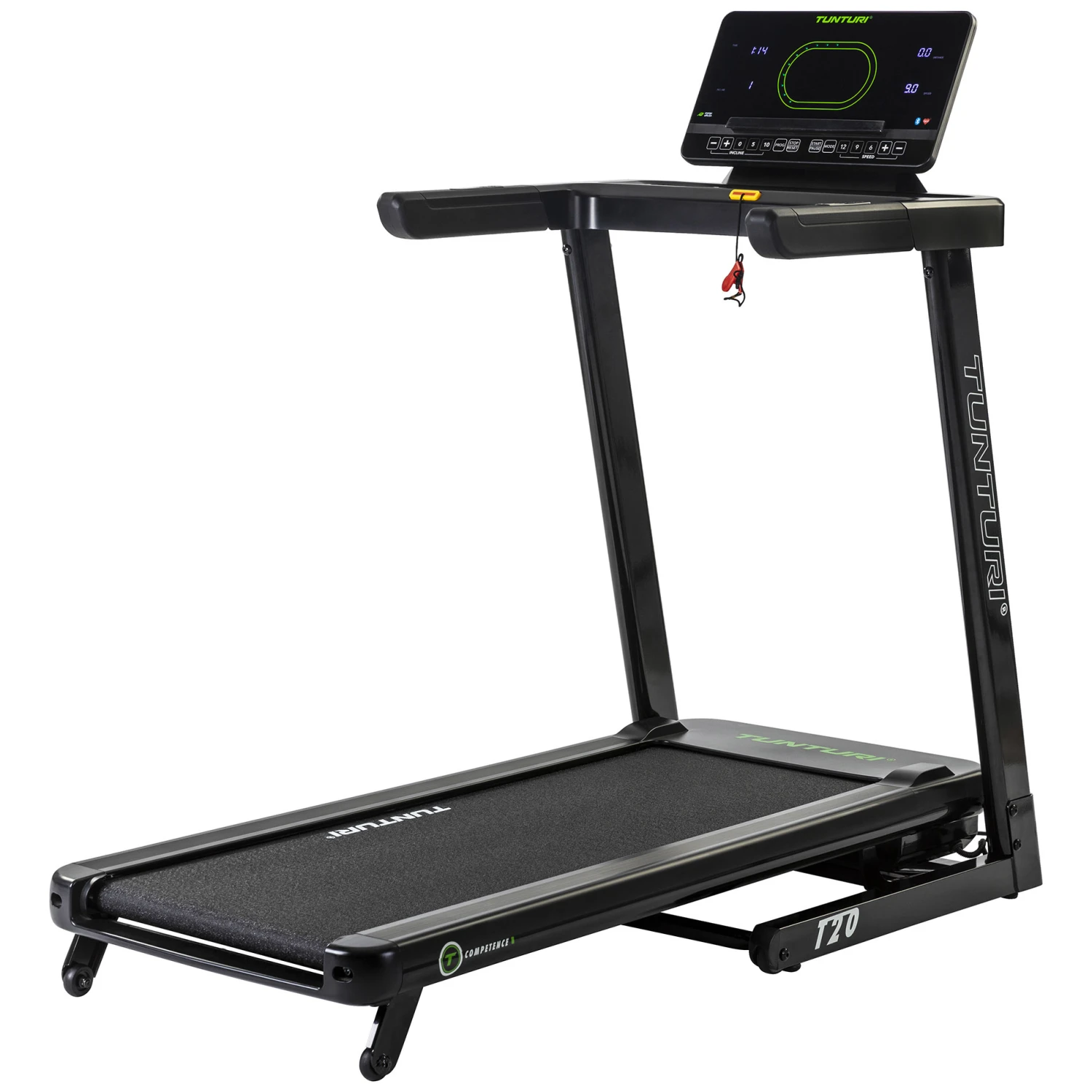 Do you think just running on a treadmill is boring? No worries! The T20 has no less than 44 challenging programs to choose from. Every program has a different profile, including elavation and speed adjustments. The monitor shows the data you are producing during the program and also features a 400m track.