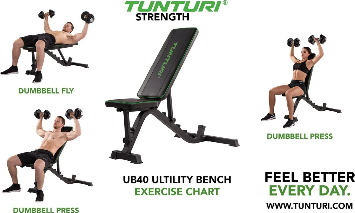 Tunturi UB40 Utility Bench Fitnessbank – Halterbank – Trainingsbank – Buikspierbank – Verstelbaar