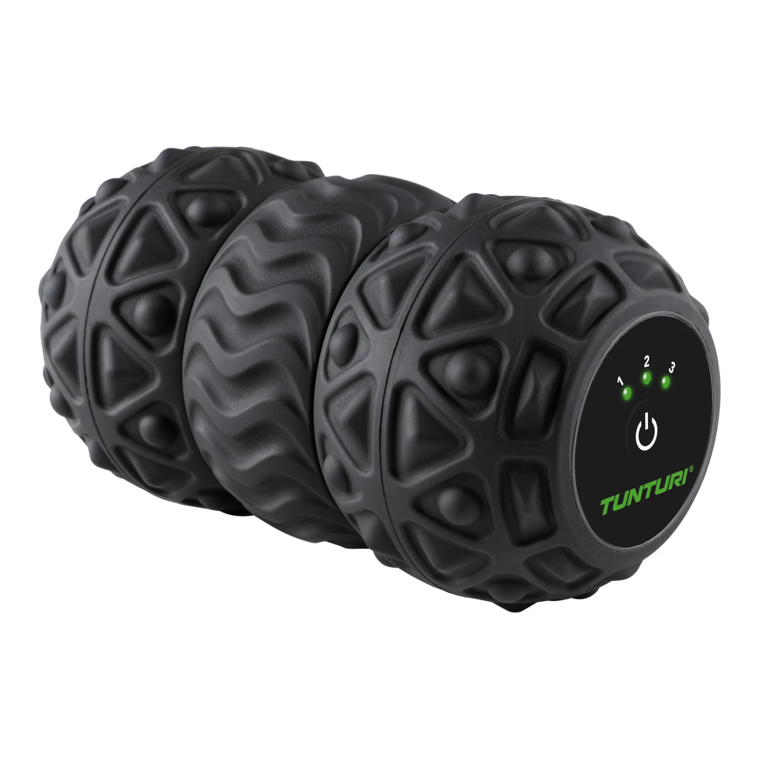 The Tunturi Vibrating Massage Roller consists of 3 moving sections with an ergonomic design. Each part has a round shape and there are small ‘notches’ in between them. This ensures that the maximum massage force is on the outside of the roller, allowing you to safely center your spine or shoulder blade without putting unnecessary strain on them. The muscle or body part you are massaging fits ‘inside’ the roller, ensuring that the entire surface is fully massaged.